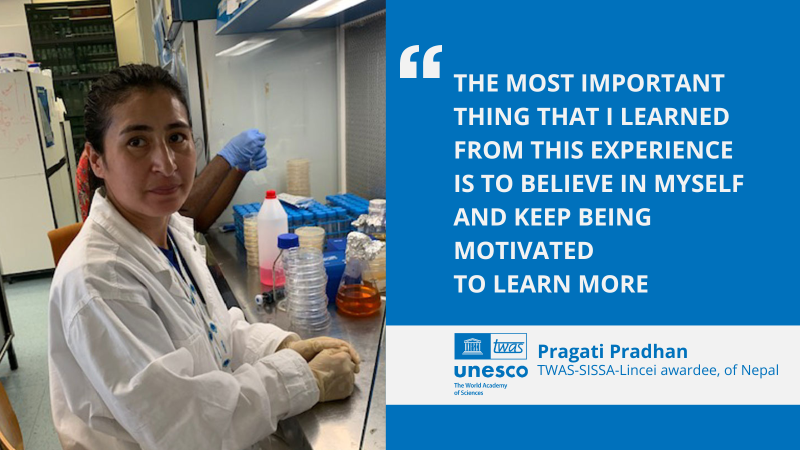In addition to her lab work, Pradhan also engaged in lab presentations. In Trieste, she presented the research projects she carried out in Nepal and the results she obtained over three months at ICGEB. "The most important thing that I learned from this experience is to believe in myself and keep being motivated to learn more about this research topic and lab techniques. What I learned during my visit made me more confident and more determined," she added.